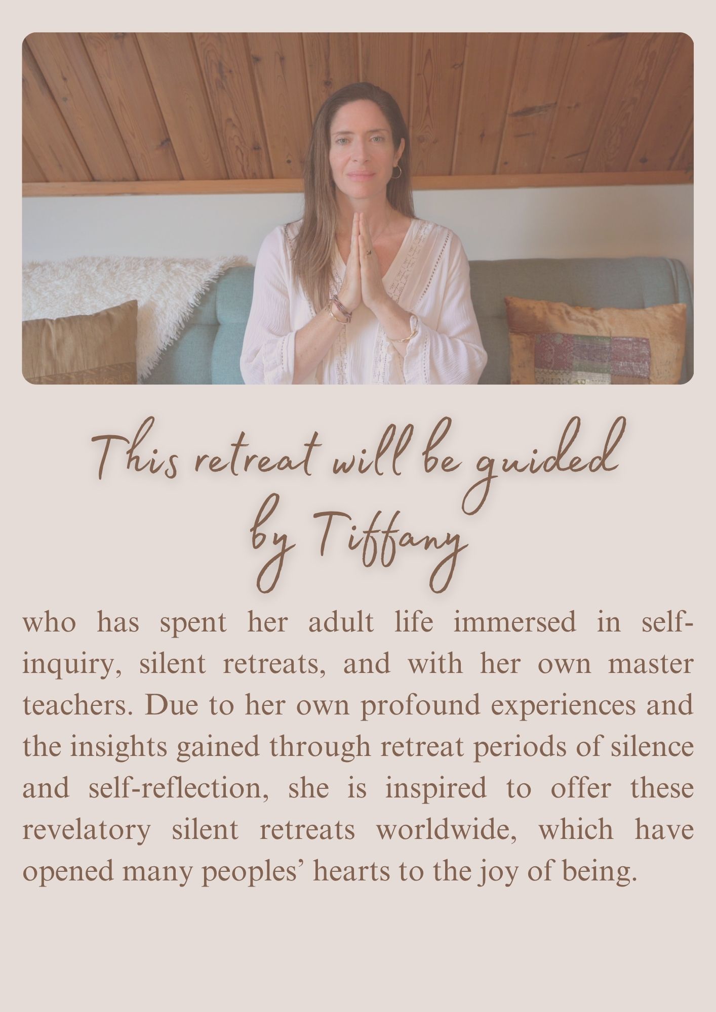 This 1-Day Retreat is a Meditation Immersion experience that focuses on accessing our real and essential nature, our highest Self, through a balanced integration of Inquiry, Meditation and Vichara Yoga. This retreat is intended to reveal our pure, true, boundless nature, and to allow that recognition to be a foundational and unchanged seeing. This is not intended as a momentary experience, or a restful day, but rather an invitation to Be as you truly are and to know that undoubtedly.