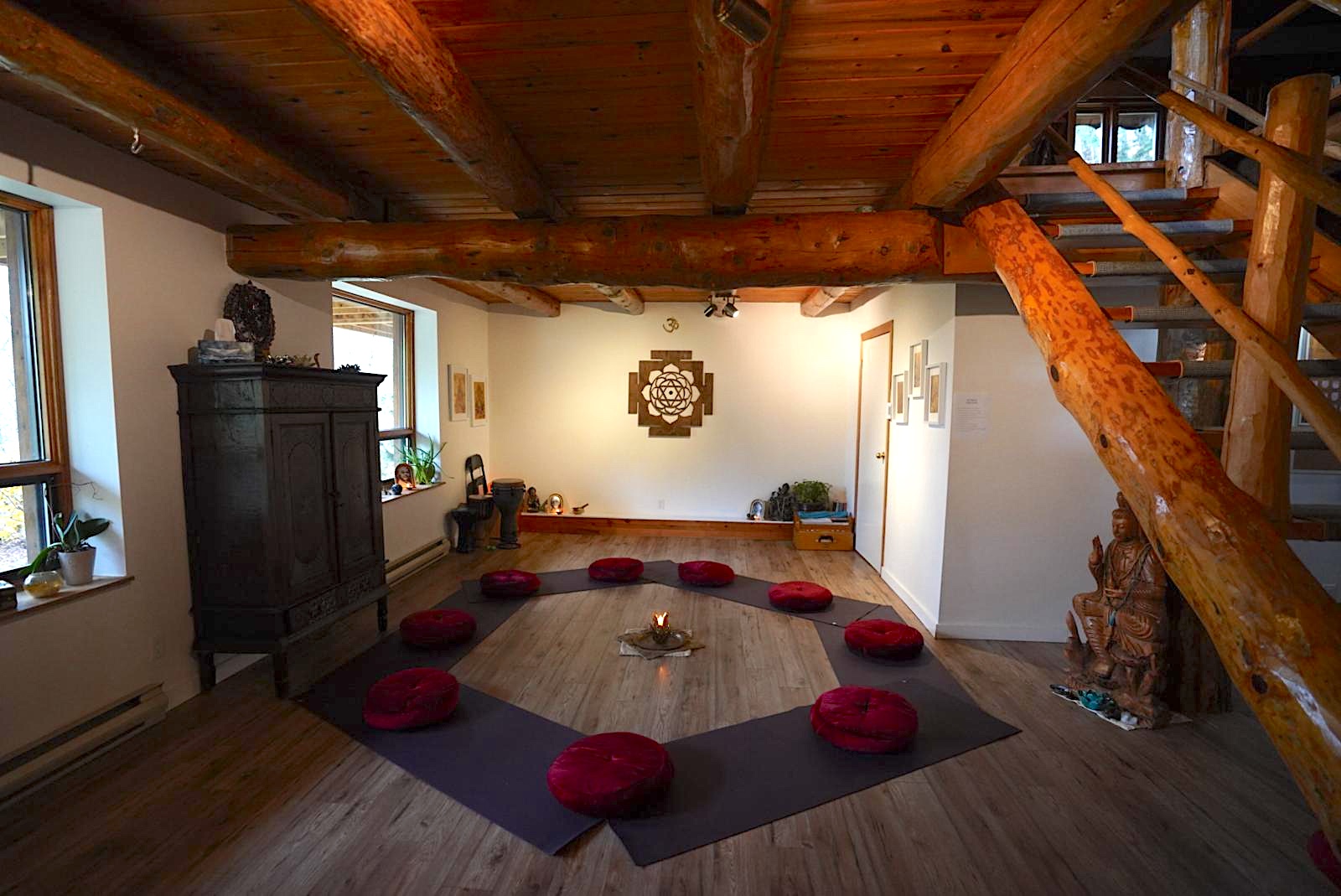 • Meditation cushions, seating supports, blankets and yoga mats
